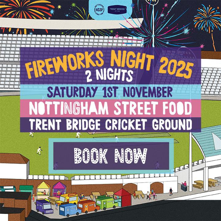 Trent Bridge will celebrate Bonfire Night with a fireworks and Street Food extravaganza on Saturday 1st Nov.